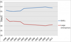 Percentage of workforce employed by small, medium and large business